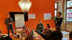 Next to German participants, also other international guests and SMEs participated during the workshop and presented their product ideas and prototypes. Hence, among other things, the company "PowerCore" (Polen) works on a new hydrogen drive for cars, "AllBinary" (Sweden) presented a novel concept for the optimization of public transport, and "TermDach" (Poland) is developing a new type of system for photovoltaic facilities for private households.