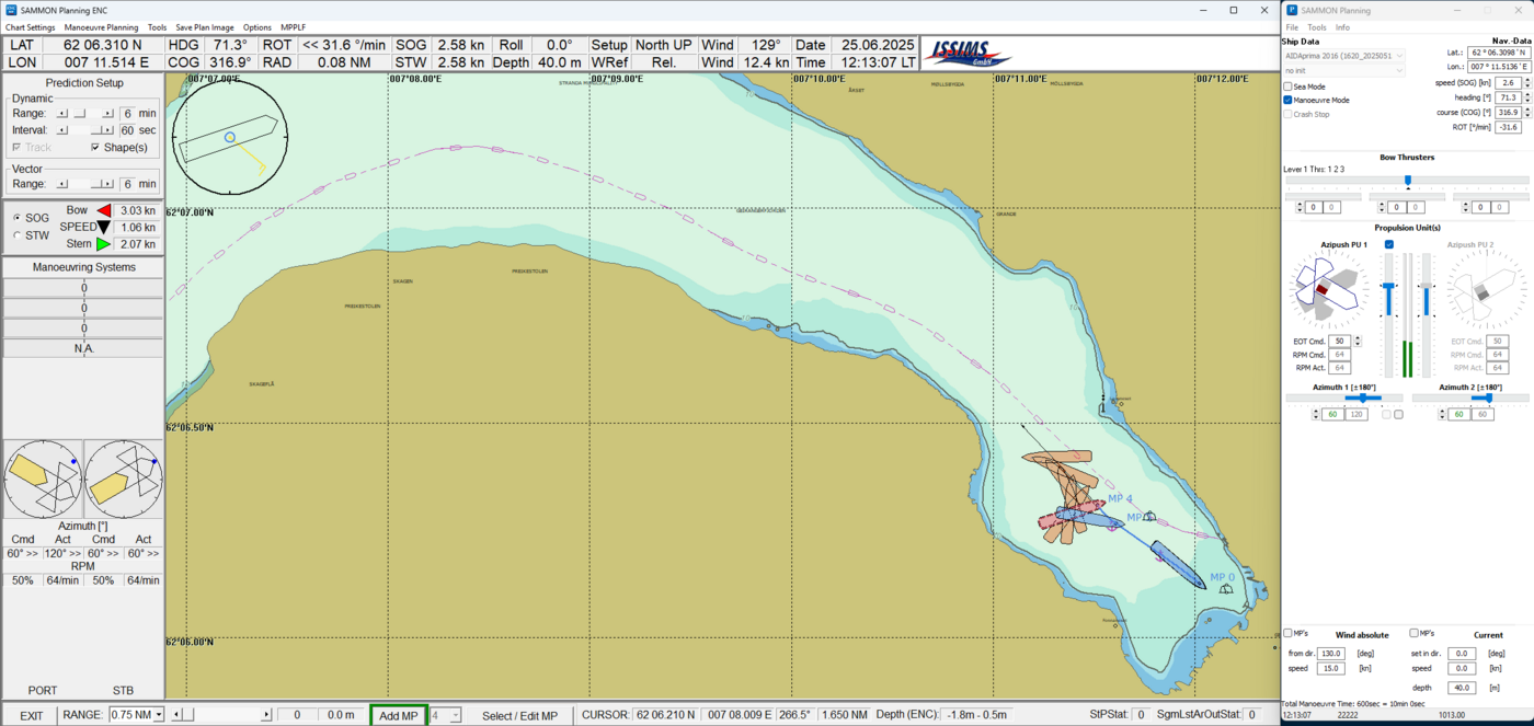Um hier zu unterstützen, hat das Institut für Innovative Schiffs-Simulation und Maritime Systeme des Bereichs Seefahrt, Anlagentechnik du Logistik der Hochschule Wismar eine Software zur Planung und Durchführung von Manövern in engen Fahrwassern entwickelt. Auf Basis hochdynamischer Schiffsmodelle können Manöver realitätsnah simuliert, geplant und trainiert werden – ohne das reale Schiff einsetzen zu müssen. Während des Trainings oder direkt an Bord lassen sich die geplanten Manöver als Bahnvorhersage anzeigen. Ein Soll/Ist-Vergleich mit der aktuellen Bahnvorhersage ermöglicht eine präzisere und systematischere manuelle Steuerung. Durch die Nutzung dieser Manöverplanungssoftware werden Strategien und deren mögliche Variationen transparent und im Vorfeld überprüfbar. Dies erhöht die Sicherheit und trägt zur Schonung der Schiffsbetriebsmittel bei.