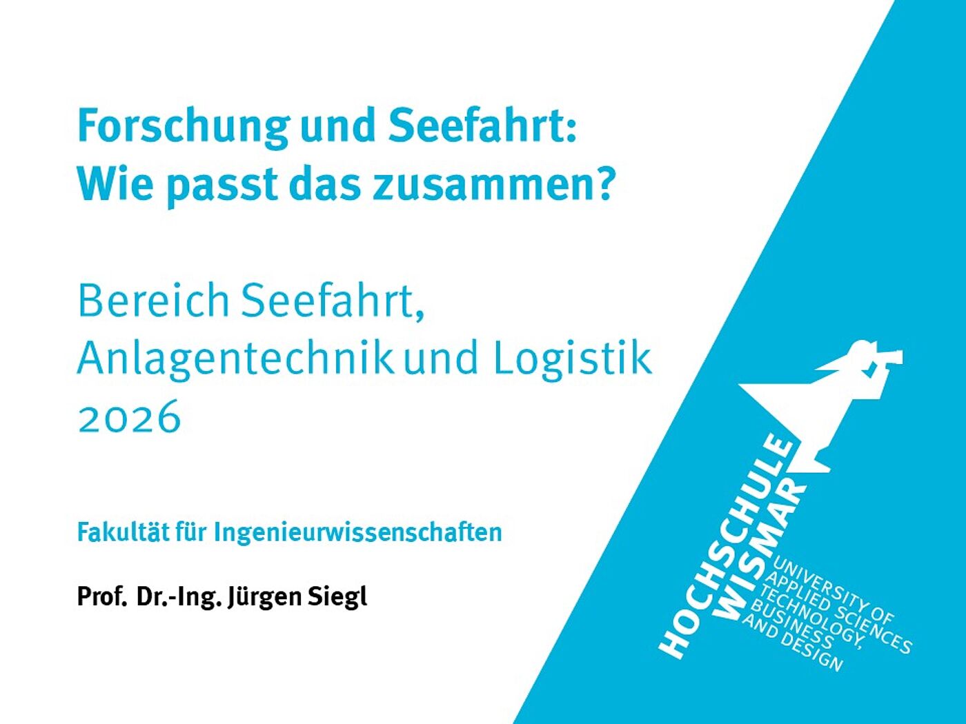 Um die Seefahrt sicherer und effizienter zu machen, werden nicht nur hochqualifizierte Seeleute gebraucht, es müssen auch neue Erkenntnisse gewonnen werden. In einer Präsentation soll gezeigt werden, wie am Bereich Seefahrt, Anlagentechnik und Logistik ausgebildet und geforscht wird.