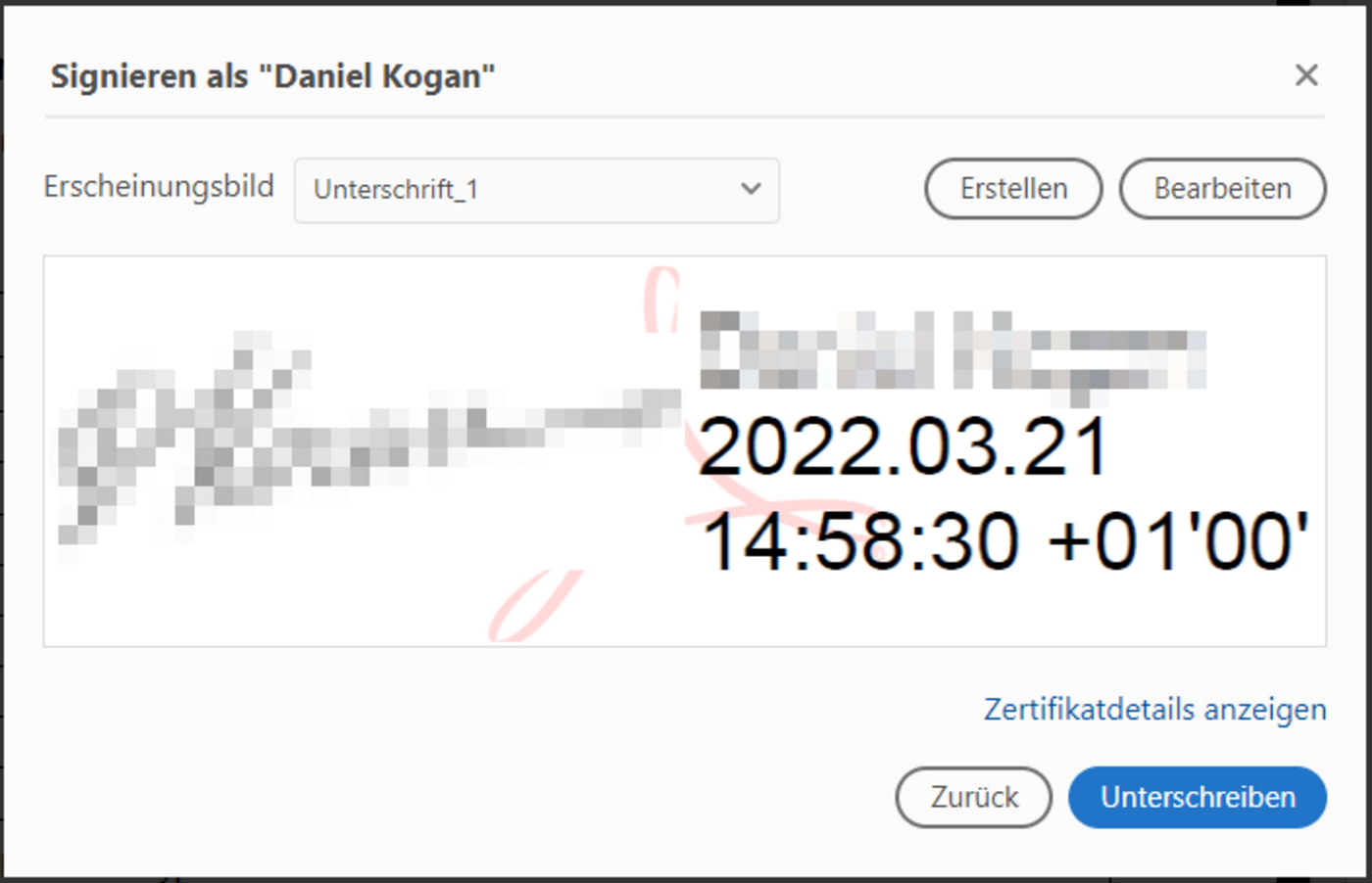 Then click on "Next". - In the next dialogue, click on "Sign" (Fig. 3).