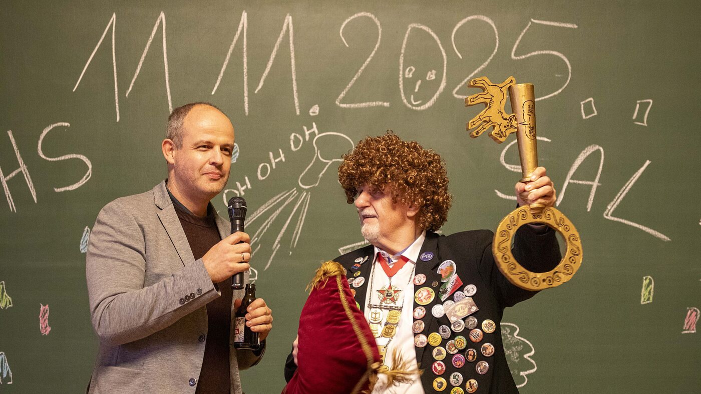 The smooth handover of the keys by the department head to the Faschingsopas was followed by a brief presentation of the history of the carnival lectures on paper before the stage belonged entirely to Prof. Dr Henrik Schnegas. With three prominent guests of honour, the Wismar teaching import from the Department of Mechanical Engineering/Process and Environmental Technology entered the auditorium, got the audience in a festive mood with his sophisticated special lecture and even presented a new chorus for the department anthem.
