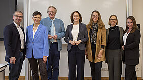 Gemeinsam haben sie die Themen Genderforschung, Gleichstellung und Inklusion auf Hochschul-, Landes- und EU-Ebene diskutiert: (von links): Frank Junge, Prof. Dr. Christine Linke, Prof. Dr. Bodo Wiegand-Hoffmeister, Dr. Katarina Barley, Bettina Martin, Dr. Antje Bernier und Jessica Bernert.