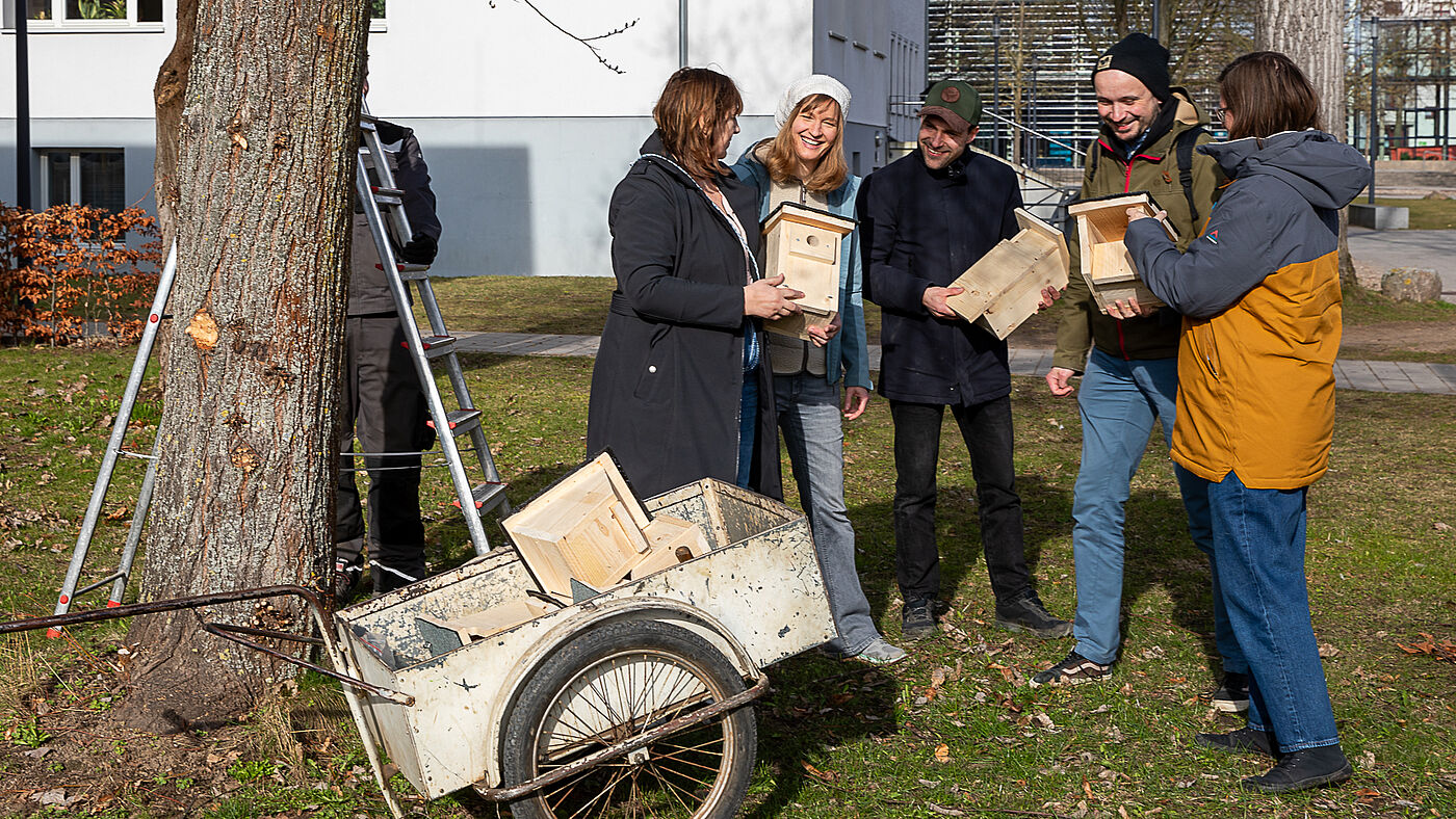 Bereits 2023 gab es eine ähnliche Aktion um Wohnraum für die kleinen gefiederten Wesen zu schaffen, die den Campus mit ihrem Gezwitscher beleben.