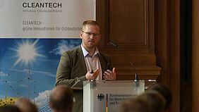 Prof. Dr.-Ing. Tassilo-Maria Schimmelpfennig während seines Fachvortrags auf der CLEANTECH-Konferenz in Berlin.