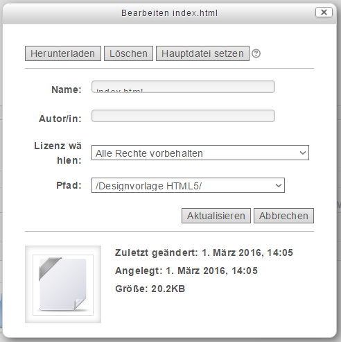 Um neu erstellte Seiten über das Menü (links) zugänglich zu machen müssen Sie die Datei modul/config.toml anpassen. Dazu fügen Sie für jede Seite folgenden Code ein: