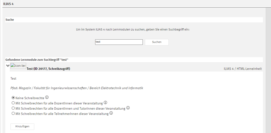 Voraussetzung: Ihr Modul ist bereits bei Ilias hochgeladen. StudIP verlinkt das Ilias-Modul.